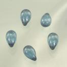 ブルーのチェコビーズを最後に留めた所から一番近い穴にテグスを通して、次にオーロラクリスタルのチェコビーズを入れていきます。